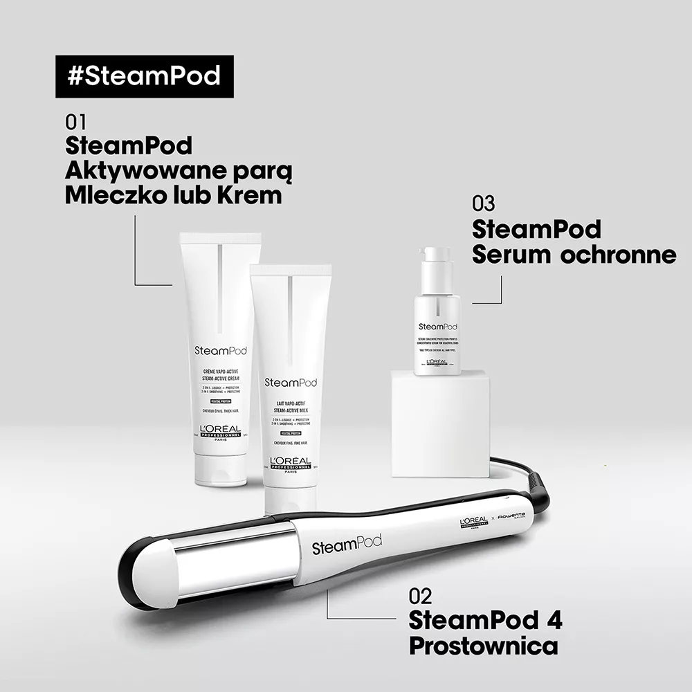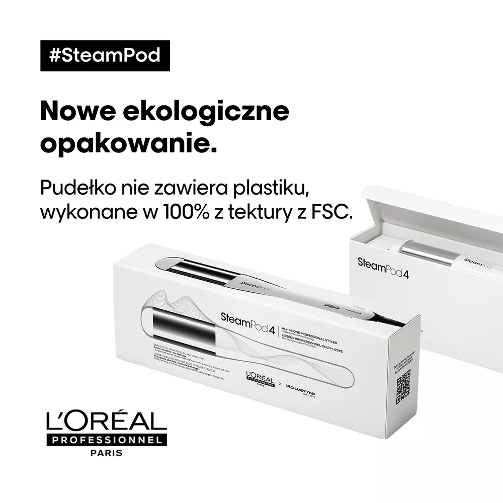 Innowacyjna parowa prostownica do włosów Loreal Professionnel Steampod 4.0 w nowej, ulepszonej odsłonie! Steampod 4.0 oferuje szersze płytki, które sięgają bliżej nasady włosów, oraz ergonomiczną konstrukcję ułatwiającą stylizację. Nowa wersja jest cieńsza i ma bardziej okrągłe górne ramię, co pozwala na tworzenie piękniejszych loków i fal. Opakowanie jest lżejsze, bez plastiku, a etui ochronne pochodzi z recyklingu. Na uchwycie znajduje się kod QR do poradnika ze wskazówkami, jak tworzyć dowolne stylizacje.