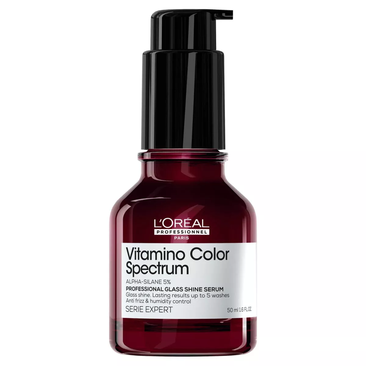 Odkryj opatentowane serum bez spłukiwania do włosów farbowanych z gamy Vitamino Color Spectrum od L'Oréal Professionnel Paris. Serum zapewnia natychmiastowy połysk z efektem tafli i długotrwałe rezultaty aż do 5 myć**. Chroni włosy przed puszeniem do 72 godzin*** i zabezpiecza je przy wilgotności powietrza do 80%. Jednocześnie chroni pasma przed wysoką temperaturą do 230°C**** urządzeń do stylizacji.