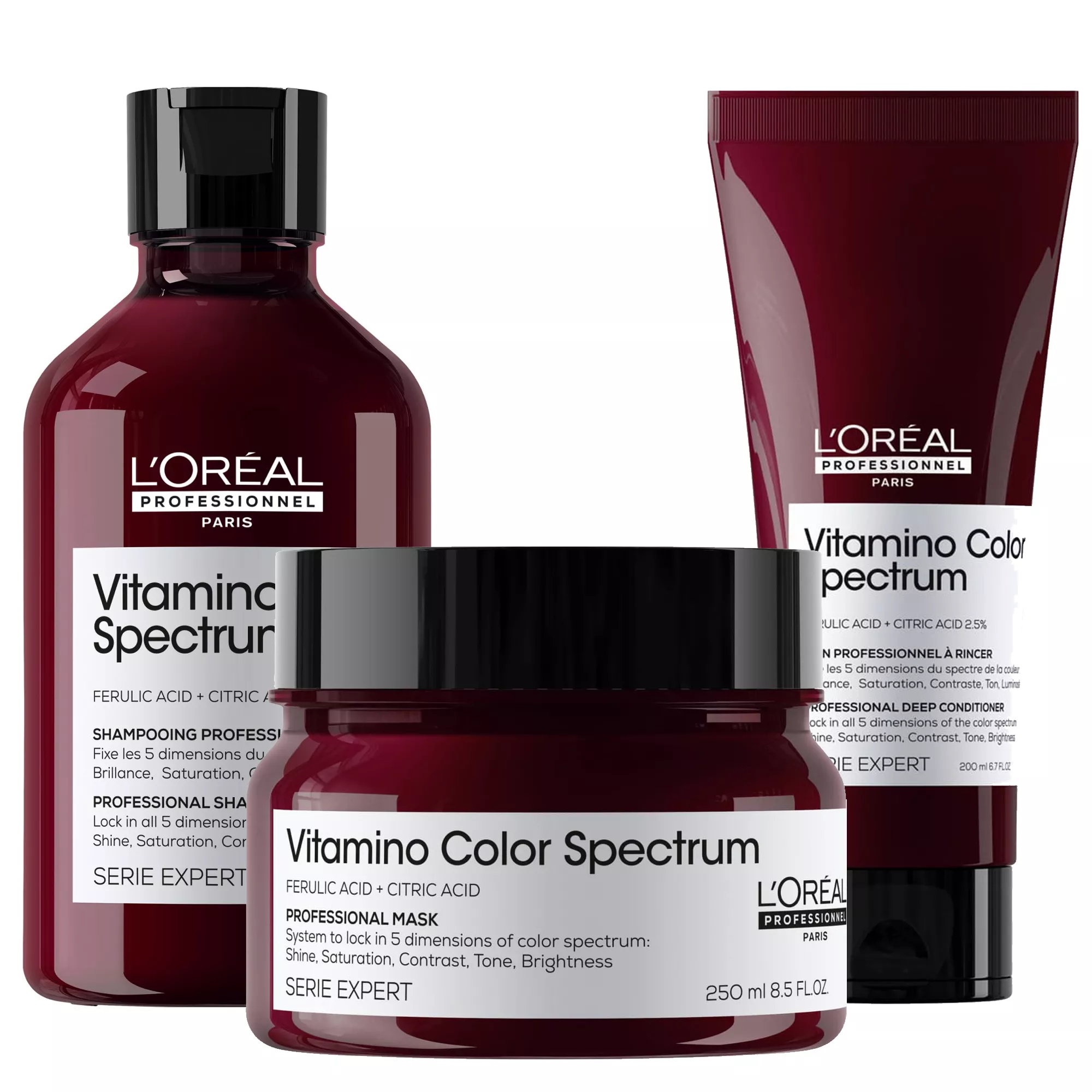 Pielęgnacja Vitamino Color Spectrum pomaga zachować intensywność koloru włosów od pierwszego dnia koloryzacji aż do 100 dni*. Zapewnia niezwykle wysoki połysk tafli lustra oraz bogate i żywe kolory. Włosy są oczyszczone, natychmiast odżywione i mocniejsze.