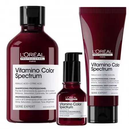 Pielęgnacja Vitamino Color Spectrum pomaga zachować intensywność koloru włosów od pierwszego dnia koloryzacji aż do 100 dni*. Zapewnia niezwykle wysoki połysk tafli lustra oraz bogate i żywe kolory. Włosy są oczyszczone, natychmiast odżywione i mocniejsze.