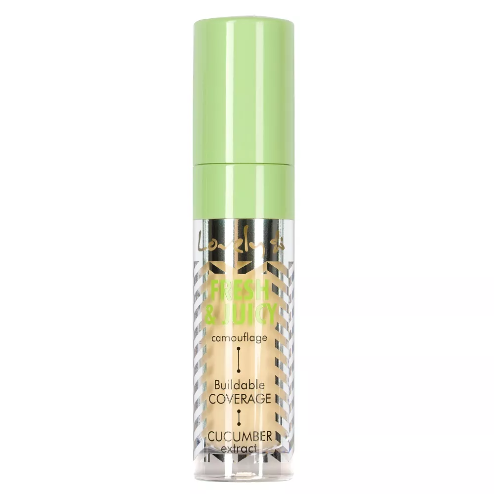 Lovely Fresh & Juicy Camouflage to wysoko kryjący korektor do twarzy, idealny do neutralizowania zmian pigmentacyjnych skóry. Dzięki zawartości witaminy E i ekstraktu ze świeżego ogórka, zapewnia pielęgnację i odświeżenie cery, dostępny w trzech unikalnych odcieniach, każdy dostosowany do innego rodzaju problemów skórnych.