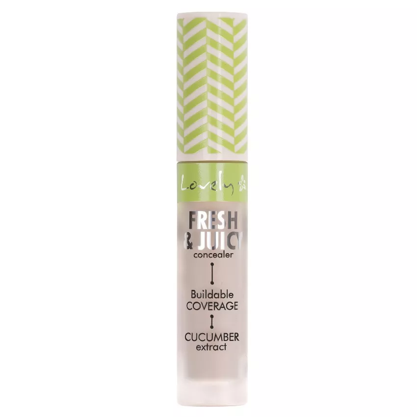 Lovely Fresh & Juicy Concealer to wyjątkowy rozświetlający korektor do twarzy, wzbogacony ekstraktem ze świeżego ogórka. Zapewnia średnie krycie, które można łatwo budować, dostosowując efekt do swoich potrzeb. Jego lekka formuła doskonale stapia się ze skórą, nadając jej naturalny blask i świeżość.