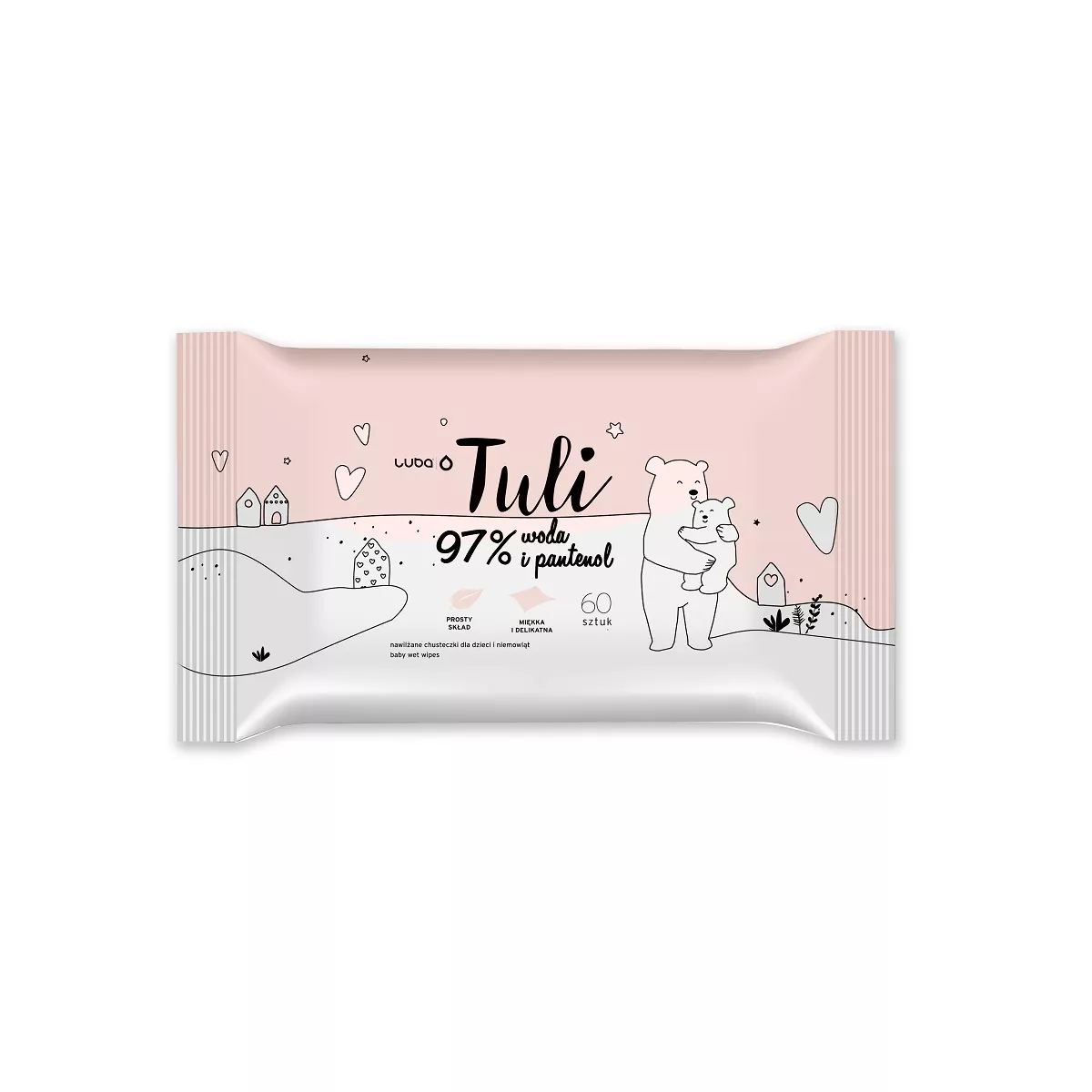 Wyjątkowo delikatne, pielęgnujące chusteczki nawilżane Luba Tuli zostały stworzone z myślą o delikatnej skórze dzieci i niemowląt. Ich prosty skład oparty jest na 97% wody i pantenolu, co czyni je idealnym wyborem do codziennej pielęgnacji, oczyszczania i odświeżania skóry maluszków już od pierwszego miesiąca życia. Chusteczki posiadają pH neutralne dla skóry, dzięki czemu nie naruszają jej naturalnej bariery ochronnej.