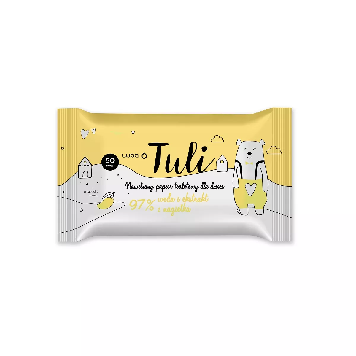 Luba Tuli nawilżany papier toaletowy dla dzieci Mango to produkt stworzony z myślą o delikatnej skórze dzieci. Zawiera 97% wody oraz ekstrakt z nagietka, co zapewnia wyjątkowe uczucie świeżości i czystości po każdym użyciu toalety. Papier cechuje się przyjemnym, słodkim zapachem mango, co czyni go idealnym towarzyszem w nauce samodzielnego korzystania z toalety przez dzieci.