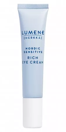 Lumene Nordic Sensitive Rich Eye Cream to wzbogacony ceramidami krem ??pod oczy do każdego rodzaju wrażliwej skóry. Krem pod oczy zawiera nordyckie ceramidy z owsa i kojący olejek z jagód, które wzmacniają uszkodzoną barierę skórną, zapewniają natychmiastową ulgę i przywracają poziom nawilżenia, aby zmniejszyć wrażliwość skóry.