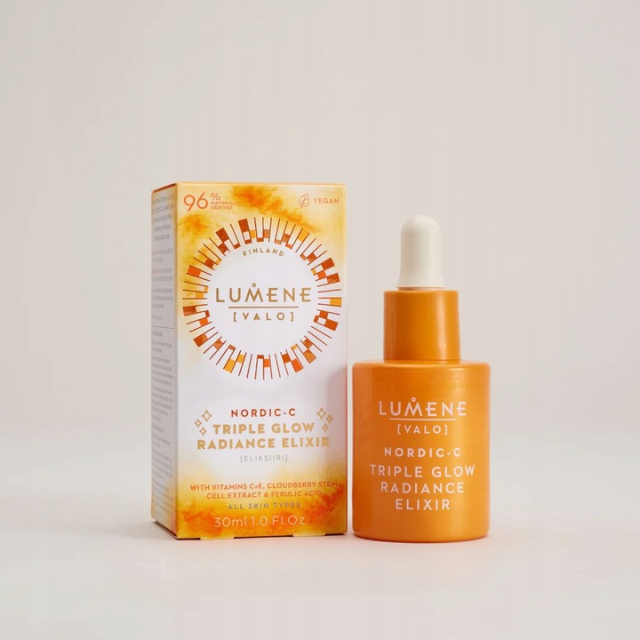 Odkryj niesamowity blask i intensywne nawilżenie z rozświetlającym eliksirem Lumene Nordic-C [VALO] z witaminą C. To innowacyjne serum do twarzy łączy moc nordyckiej natury i zaawansowanej biotechnologii, by skutecznie rozświetlić cerę, wyrównać jej koloryt i zadbać o młodzieńczy wygląd skóry każdego dnia.