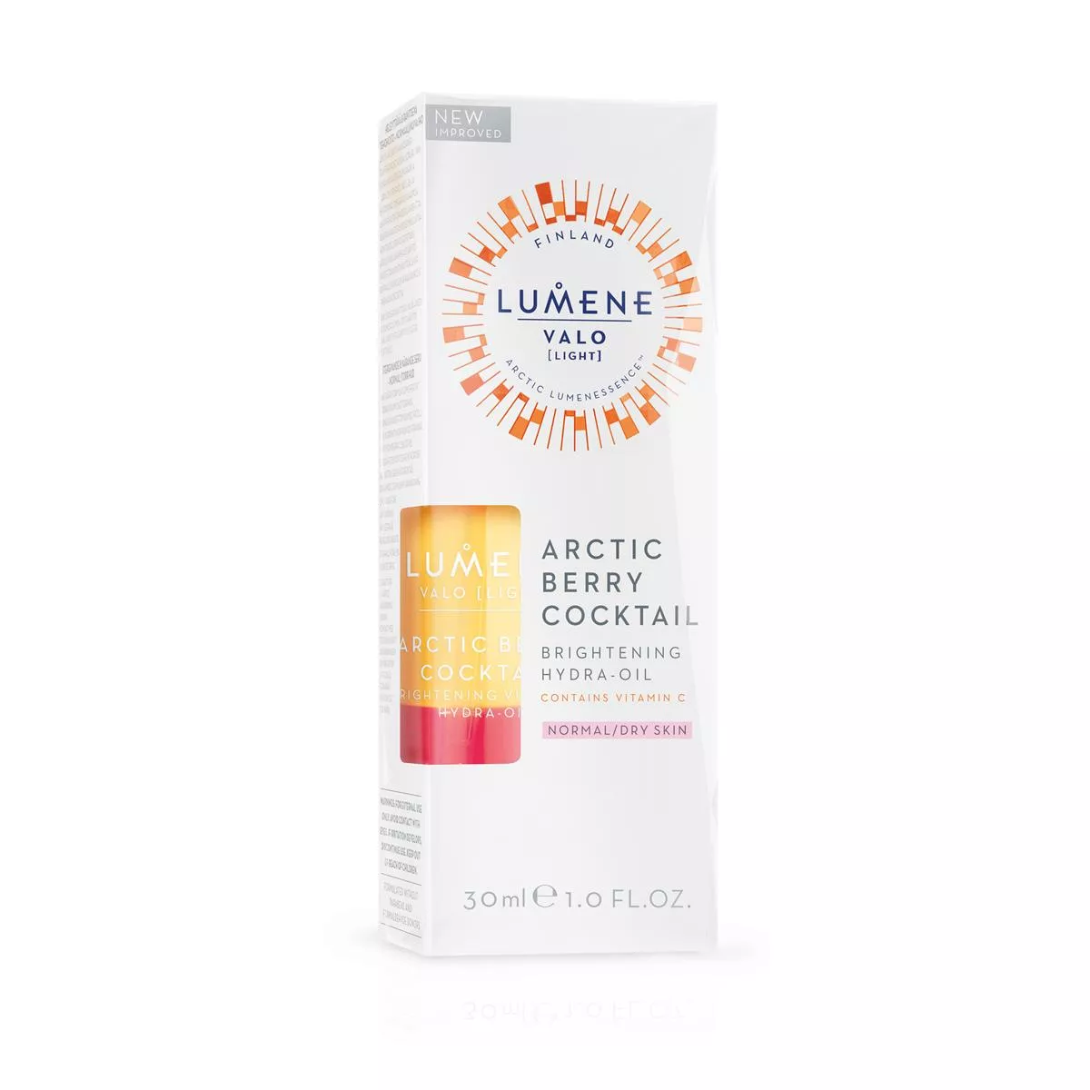 Koktajl z witaminą C Lumene VALO przeznaczony jest do pielęgnacji cery normalnej. Działa na zasadzie technologii rozświetlającej oraz na bazie ekstraktu z arktycznej maliny moroszki, który dzięki witaminom, C, E i A wzmacnia skórę i wydobywa jej młodzieńczy blask. Ponadto witamina C, kwas hialuronowy i arktyczna woda źródlana natychmiast nawilżają i ujędrniają skórę. W efekcie skóra jest miękka, nawodniona i wygląda zdrowo i młodo.