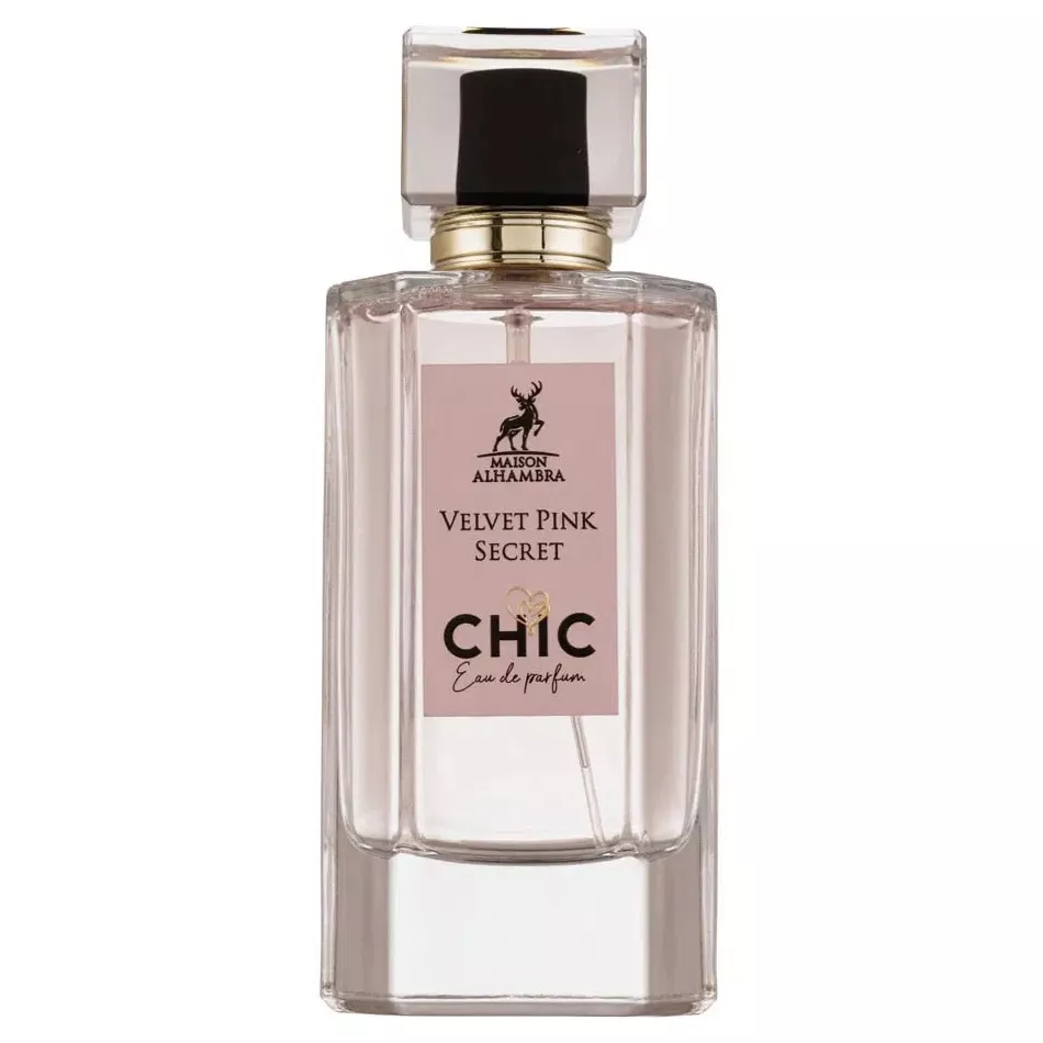 Maison Alhambra Chic Velvet Pink Secret to zachwycająca woda perfumowana, która łączy w sobie soczyste nuty owocowe, delikatne akordy kwiatowe i subtelną słodycz. Ta kompozycja emanuje kobiecością i elegancją, czyniąc ją idealnym wyborem dla nowoczesnych kobiet. Zarówno aromat, jak i wyrafinowany flakon sprawiają, że Chic Velvet Pink Secret to nie tylko perfumy – to stylowy dodatek, który podkreśla Twoją wyjątkowość.