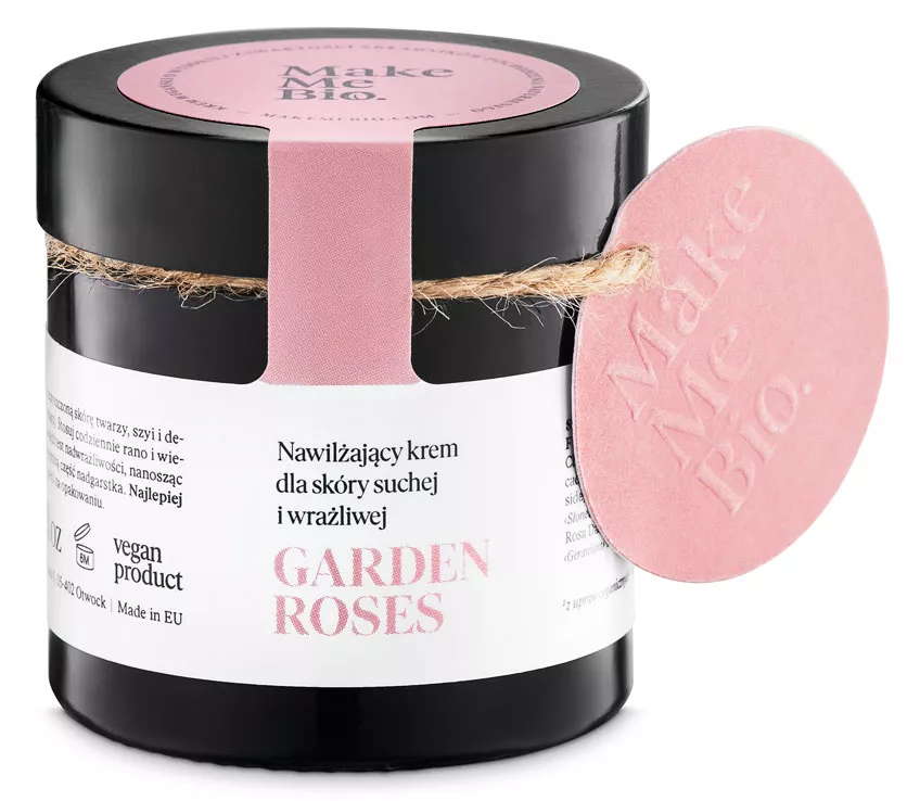 Jeżeli masz skórę suchą i wrażliwą, zadbaj o nią z kremem nawilżającym Make Me Bio Garden Roses. Krem ma nie tylko właściwości nawilżające, ale także tonizuje skórę, chroni ją przed czynnikami zewnętrznymi, regeneruje skórę i sprawia, że jest przyjemnie miękka. Różany zapach koi zmysły. W składzie tego kosmetyku znajdziesz hydrolat z róży i geranium, olejek jojoba, olejek z migdałów, masło mango, olejek makadamia.