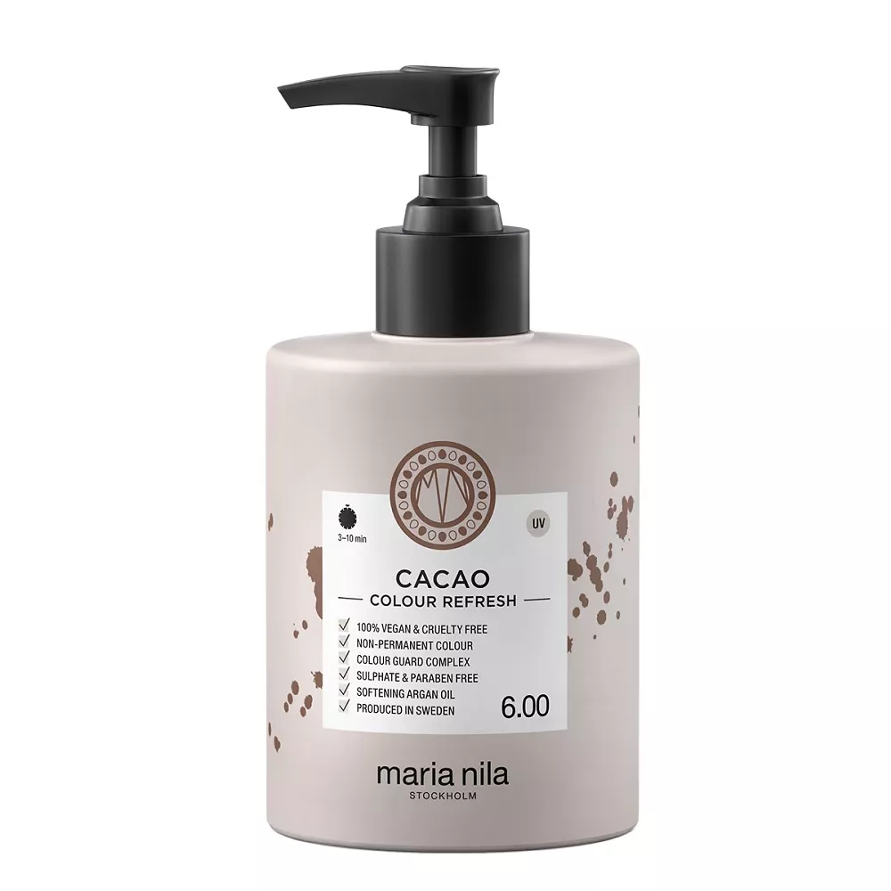 Maria Nila Colour Refresh maska koloryzująca do włosów 6.0 Cacao 300ml to odżywcza maska, która szybko odświeża i nadaje włosom brązowy odcień. Wzbogacona olejkiem arganowym, intensywnie odżywia, nawilża i nadaje włosom wyjątkowy połysk.
