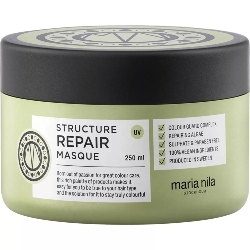 Maria Nila Structure Repair Masque to skuteczna maska zmiękczająca i nawilżająca przeznaczona do włosów suchych, zniszczonych i poddanych zabiegom chemicznym. Dzięki regenerującym algom, pomaga włosom odzyskać naturalną siłę, dodając im miękkości i blasku. Dodatkowo, maska zwalcza problem elektryzowania się włosów. Ciesz się delikatnym zapachem wanilii, róży i jaśminu podczas każdej aplikacji.