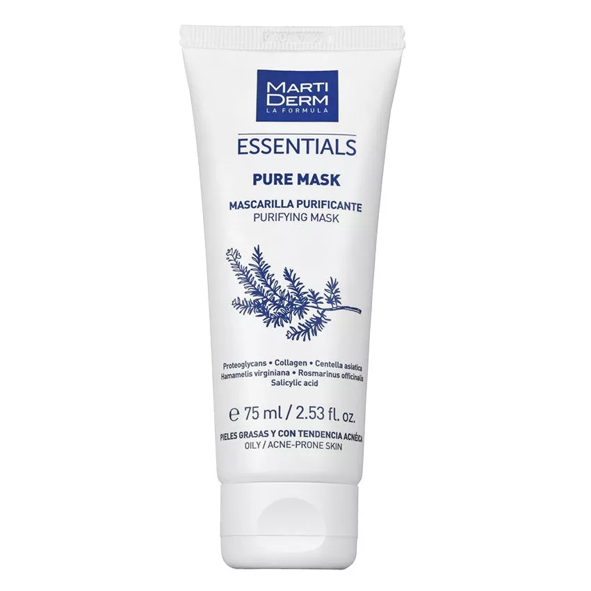 Martiderm Essentials Pure Mask to oczyszczająca maska do twarzy, która reguluje wydzielanie sebum, dogłębnie oczyszcza i nawilża skórę. Po użyciu skóra staje się gładka, a pory są widocznie zmniejszone.