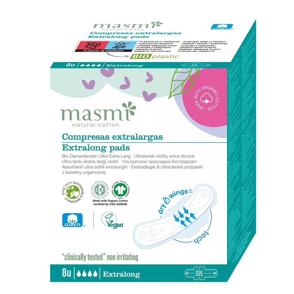 Masmi Natural Cotton ekstradługie podpaski z organicznej bawełny 8szt