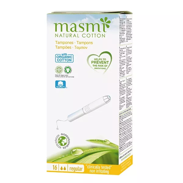 Masmi Tampons to tampony z aplikatorem wykonane w całości ze 100% certyfikowanej bawełny organicznej, które zapewniają długotrwałą ochronę i komfort. Są hypoalergiczne i wysoce chłonne, co czyni je idealnym wyborem dla kobiet ze skórą wrażliwą i skłonną do podrażnień. Dzięki specjalnej osłonie bezpieczeństwa zapobiegają pozostawianiu włókien przyległych do ściany pochwy podczas usuwania tamponu.