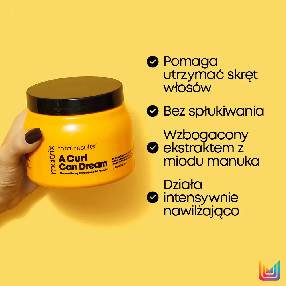 Krem do stylizacji i pielęgnacji loków i fal Matrix A Curl Can Dream to prosty sposób na zadbanie o swoje włosy i zapewnienie im odpowiedniej ochrony. Kosmetyk zawiera ekstrakt z miodu manuka. Krem intensywnie nawilża włosy i pomaga utrzymać ich skręt. A do tego zapewnia skuteczną termoochronę. Twoje loki tego potrzebują!