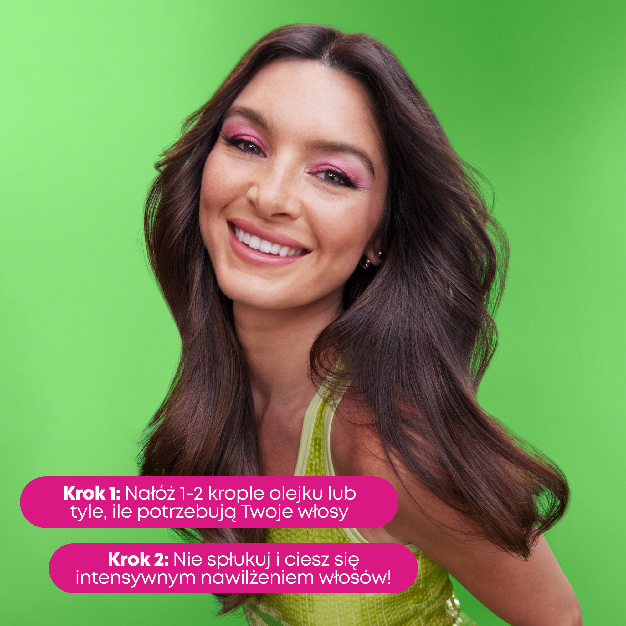 Kuracja na noc: Nałóż na długości i końce na wilgotne włosy 1 lub 2 pipetki olejku przed snem, aby uzyskać miękkie w dotyku włosy i ułatwić ich rozczesywanie o poranku.