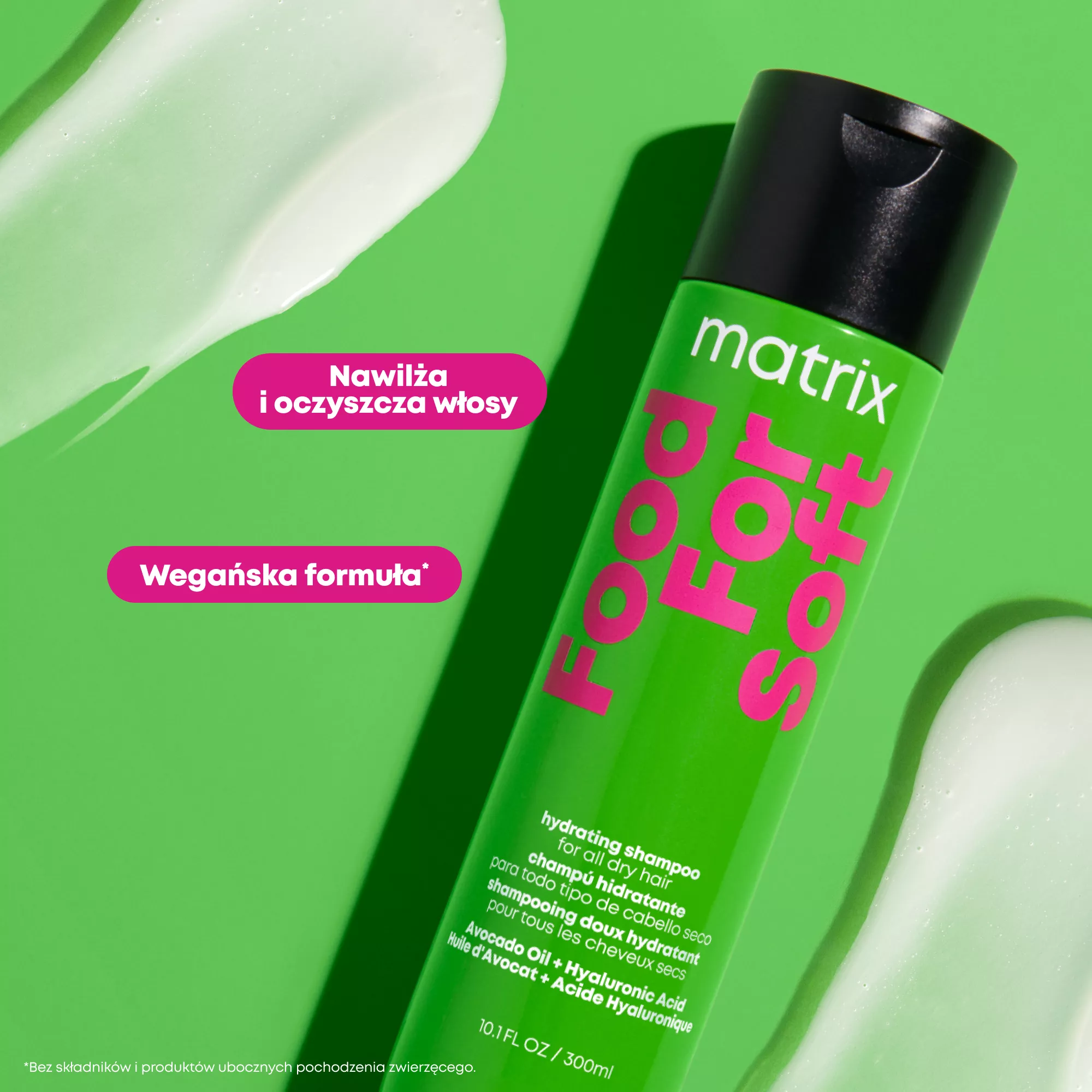 Produkt odpowiedni do codziennego użytku. Nałóż pożądaną ilość produktu na skórę głowy, a następnie rozprowadź na długości i końce włosów. Spień. Spłucz. Kolejno zastosuj odżywkę oraz olejek do włosów FOOD FOR SOFT. W przypadku dostania się preparatu do oczu, natychmiast przepłucz je wodą.