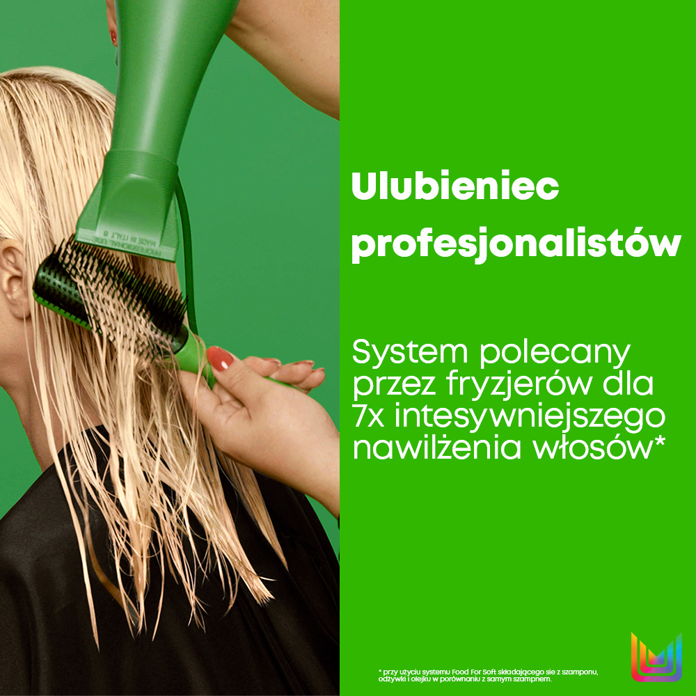 Formuły gamy FOOD FOR SOFT, składającej się z szamponu, odżywki i olejku do włosów, wzbogacone są olejem z awokado, który pomaga zamknąć łuskę włosa przeciwdziałając utracie wilgoci. Dodatkowo formuły szamponu i odżywki FOOD FOR SOFT wzbogacone są kwasem hialuronowym, który wspiera odpowiednie nawilżenie wszystkich rodzajów włosów.