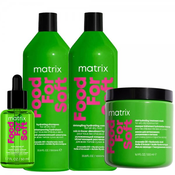 Matrix Food For Soft, zestaw XL intensywnie nawilżający: szampon + odżywka + maska + olejek