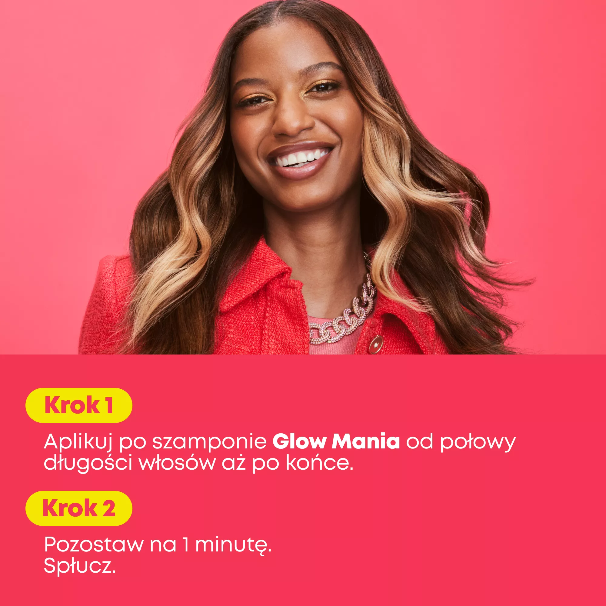 *Na podstawie badań konsumenckich przy zastosowaniu systemu Glow Mania składającego się z szamponu, odżywki lub maski i odżywki bez spłukiwania.