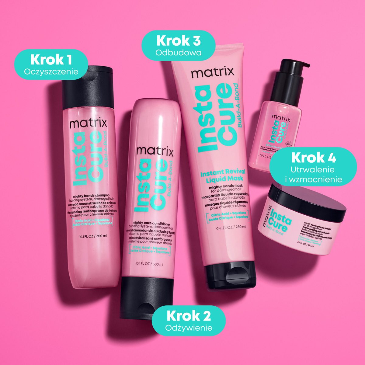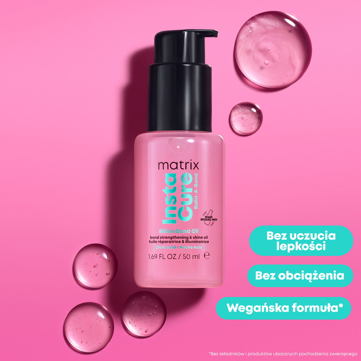 Olejek odbudowujący Instacure Build-A-Bond Billion Bond Oil od Matrix to miliard wiązań dla widocznej rekonstrukcji uszkodzeń. Zawiera kwas cytrynowy, który wzmacnia wiązania we włosach i aminokwas, który odbudowuje ich wewnętrzne struktury. Olejek dodaje włosom blasku nie obciążając ich. Szybko się wchłania, nie pozostawiając tłustej warstwy. Technologia bonding natychmiastowo regeneruje i wzmacnia włosy. Sprawia, że pasma łatwo się rozczesują i są miękkie w dotyku. Wygładza je i nadaje im jedwabisty połysk.