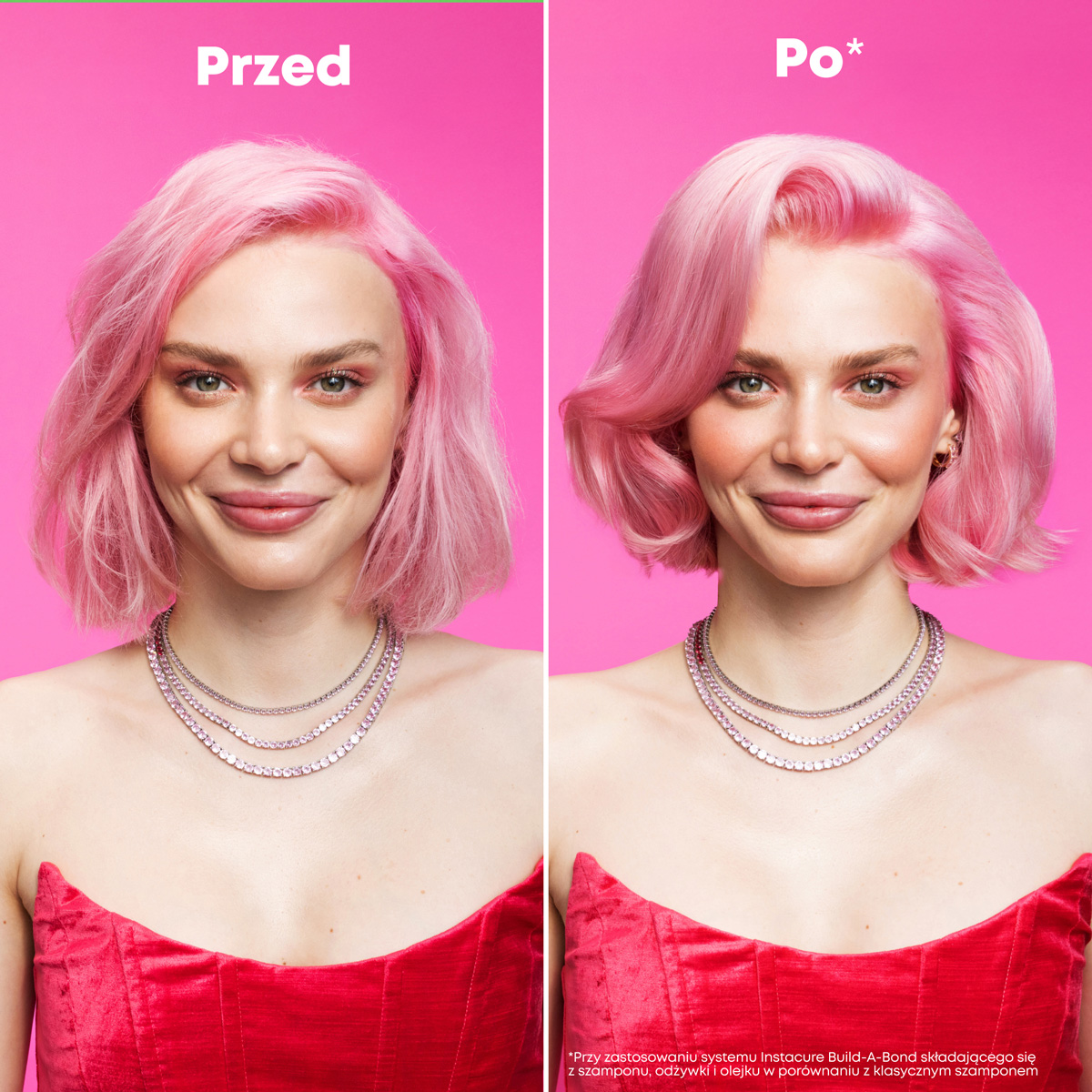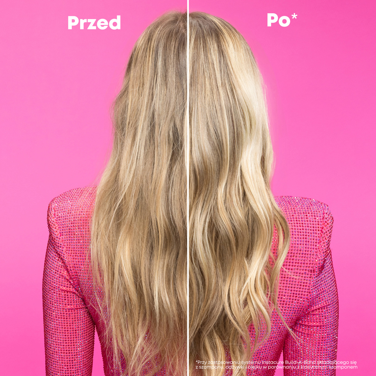 *Test instrumentalny przy użyciu systemu składającego się z szamponu, maski i olejku Instacure Build-A-Bond w porównaniu z klasycznym szamponem.