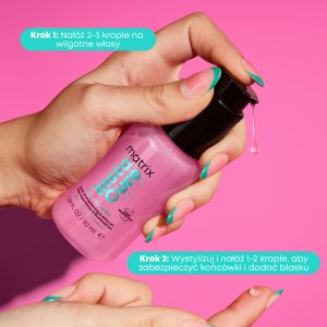 Stosuj regularnie. Nałóż dwie pompki produktu na wilgotne lub suche włosy, rozetrzyj w dłoniach i równomiernie rozprowadź od połowy długości aż po same końce - w razie potrzeby dodaj więcej. W celu ochrony przed wysoką temperaturą stosuj przed użyciem urządzeń do stylizacji termicznej. Nie spłukuj.