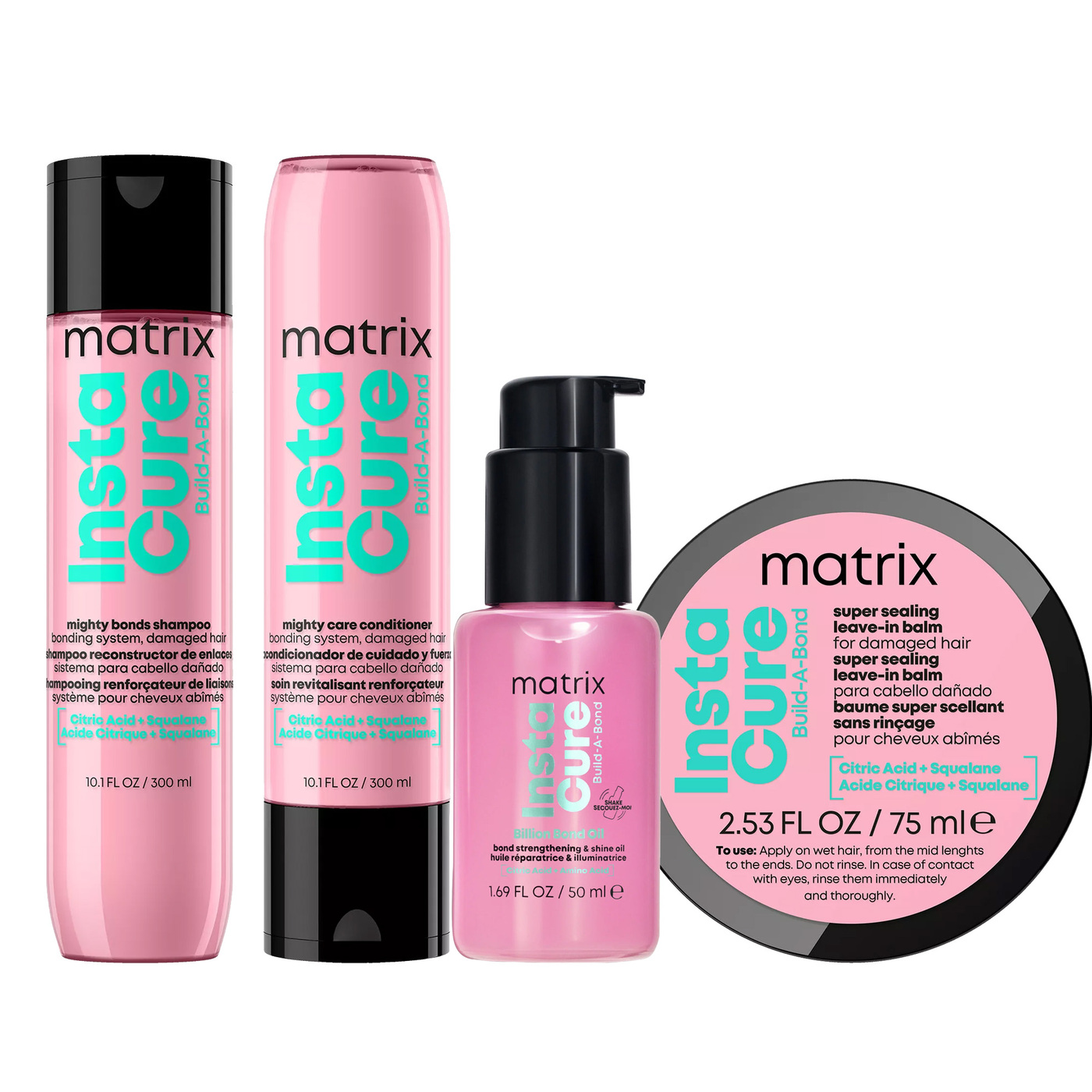 Matrix Instacure Build-A-Bond, zestaw odbudowujący do włosów zniszczonych, szampon + odżywka + balsam + olejek