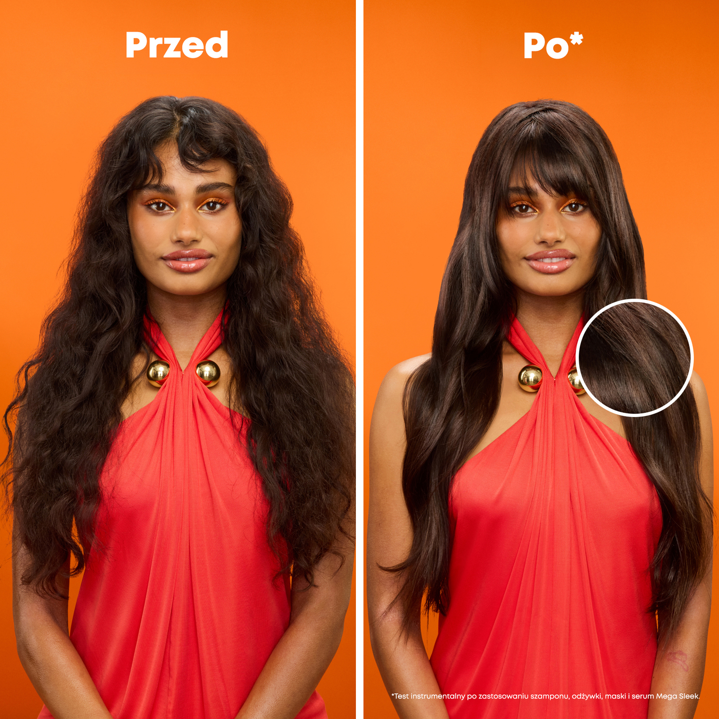 *Test instrumentalny po zastosowaniu szamponu, maski i serum Mega Sleek