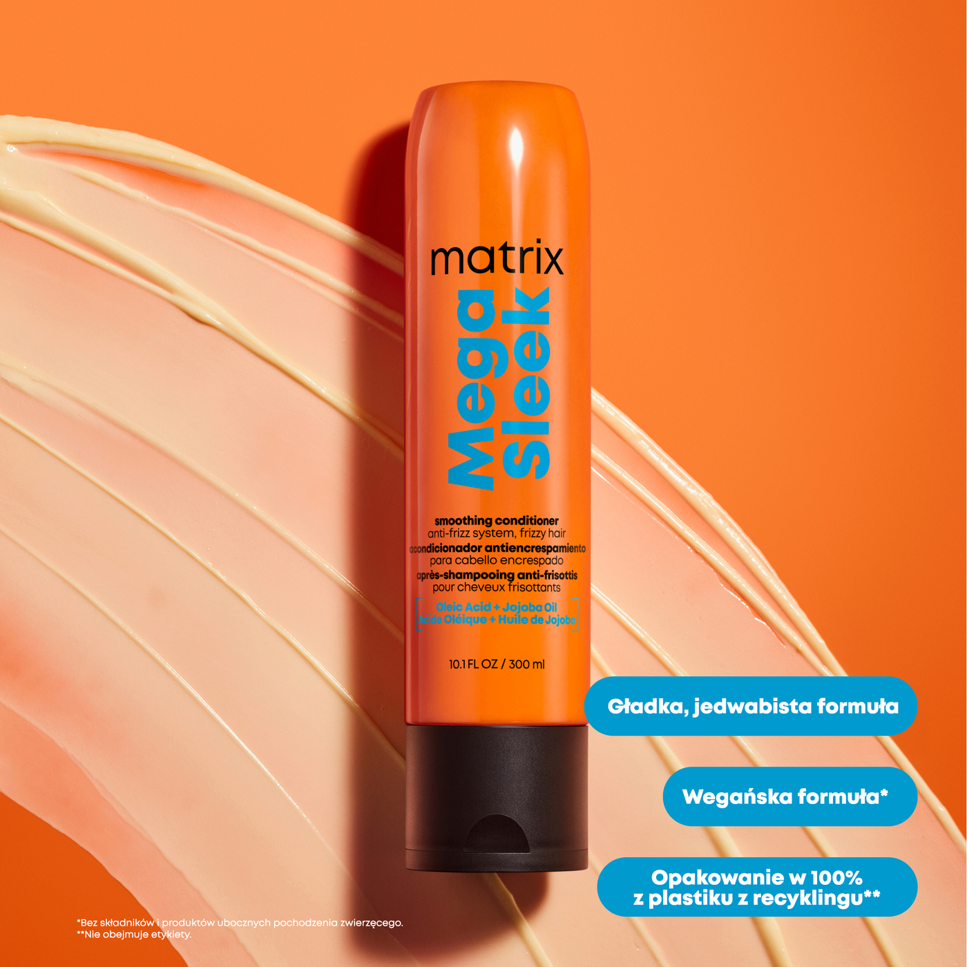 Zapomnij o napuszonych, sterczących i elektryzujących się włosach, z których nie sposób ułożyć jakąkolwiek fryzurę. Polecamy zestaw kosmetyków wygładzających włosy Matrix Mega Sllek do codziennego stosowania. Kosmetyki Matrix Total Results pomagają kontrolować włosy i chronią je przed wpływem wilgoci. W składzie produktów znajduje się olej jojoba, które doskonale nawilża, wygładza i uelastycznia włosy. Ponadto kosmetyki Matrix doskonale łagodzą podrażnienia i poprawiają kondycję włosów, dodając im blasku.