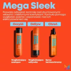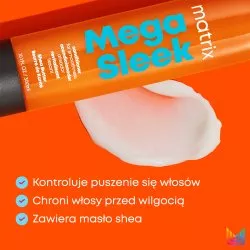 Jeśli zmagasz się z problemem niesfornych i ciężkich do okiełznania włosów sięgnij koniecznie po odżywkę wygładzającą Matrix Total Results Mega Sleek. Kosmetyk ten pomaga kontrolować włosy i chroni je przed wpływem wilgoci. W składzie produktu znajduje się masło Shea, które doskonale nawilża, wygładza i uelastycznia włosy. Ponadto doskonale łagodzi podrażnienia i poprawia kondycję włosów, dodając im blasku. Ma działanie odżywcze, a także chroni przed starzeniem. Produkt ten doskonale sprawdzi się w codziennym użyciu!