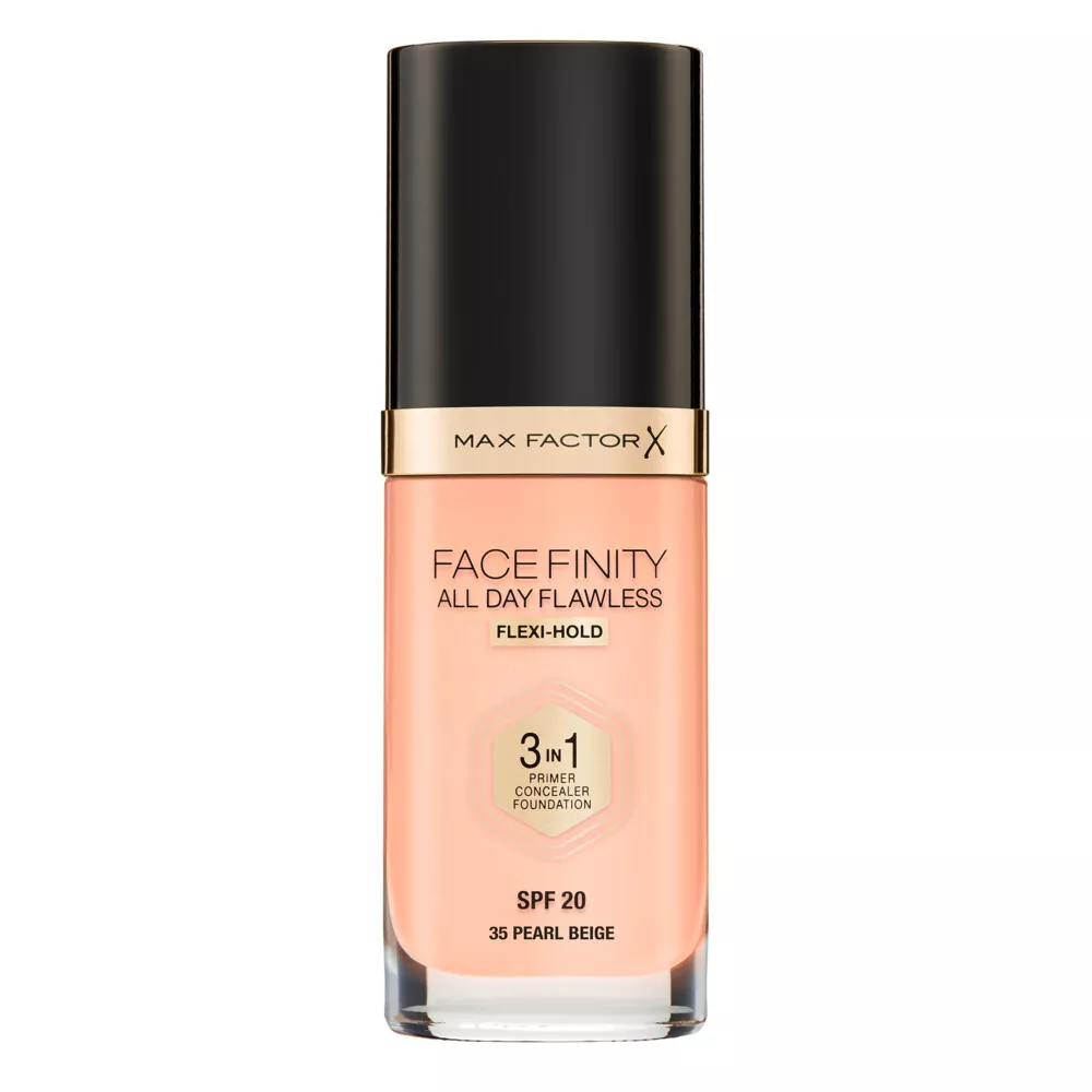 Odkryj Max Factor Facefinity All Day Flawless 3 w 1 kryjący podkład w płynie w odcieniu 35 Pearl Beige. To innowacyjne rozwiązanie łączy w sobie właściwości matującego podkładu, bazy i korektora, oferując perfekcyjne wykończenie dla każdego typu cery. Dzięki swojej wodoodpornej formule i filtrom SPF 20, produkt nie tylko zapewnia długotrwałe krycie, ale także chroni skórę przed szkodliwym działaniem promieni słonecznych.