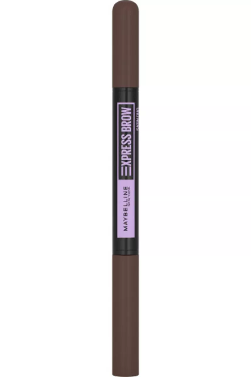 Dwustronna kredka do brwi Maybelline New York Express Brow w odcieniu Dark Brown to idealne narzędzie do precyzyjnego kształtowania i wypełniania brwi. Dzięki tej kredce łatwo nadasz brwiom wymarzony kształt i uzupełnisz ewentualne luki. Jej ścięta końcówka z automatyczną kredką umożliwia precyzyjne wyrysowanie kształtu, a gąbeczka z pigmentami pozwala na ich wypełnienie. To prosta i bezwysiłkowa aplikacja, dzięki której uzyskasz widocznie pełne i podkreślone brwi.