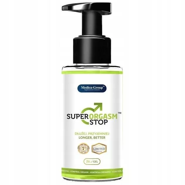 Super Orgasm Stop to żel intymny dla mężczyzn, który w naturalny i bezpieczny sposób wywołuje efekt znieczulenia i chłodzenia, opóźniając wytrysk i wydłużając czas trwania stosunku. Żel stymuluje i wzmacnia wzwód, oferując intensywne i niezapomniane doznania seksualne.