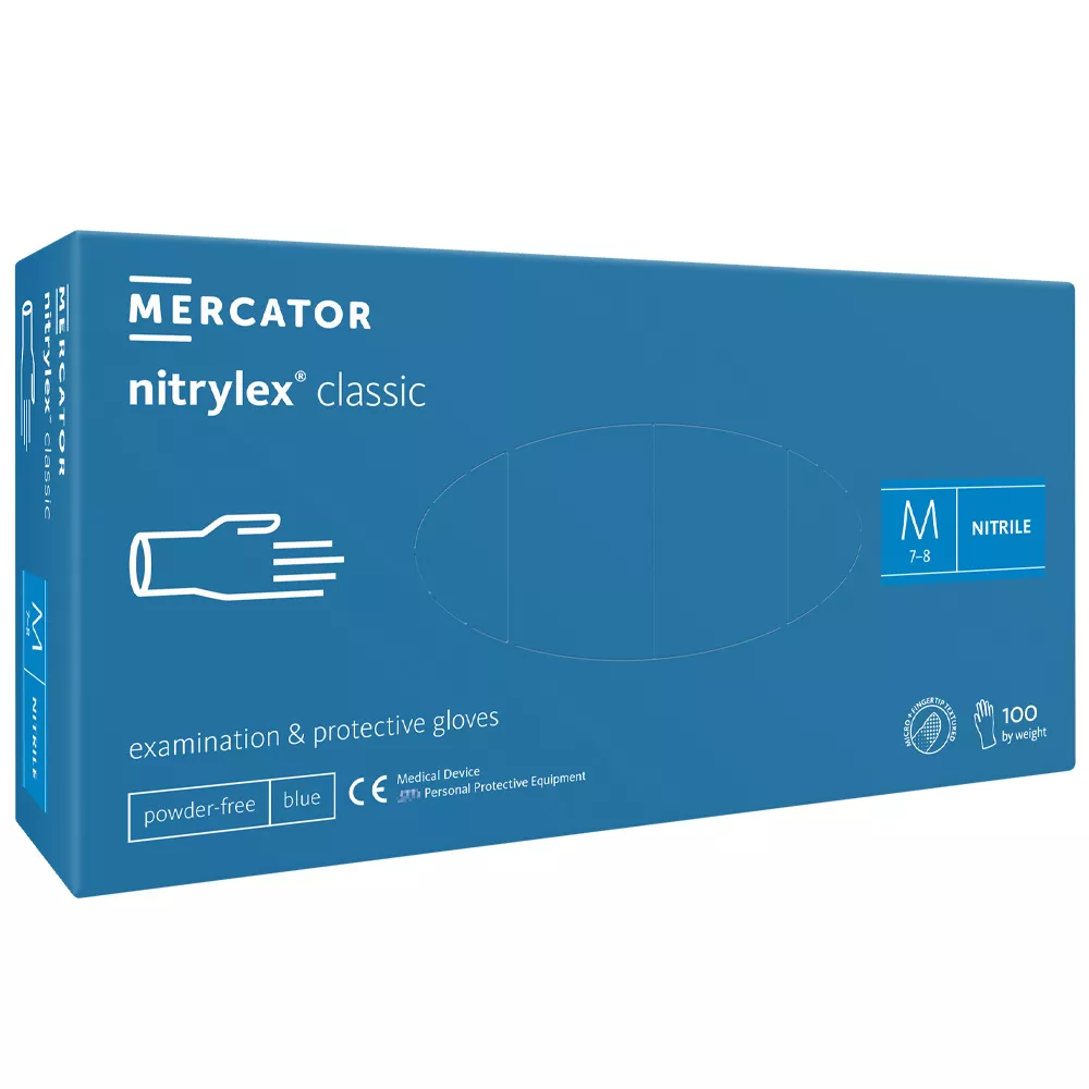 Rękawiczki nitrylowe Mercator Nitrylex to alternatywa dla rękawiczek ochronnych i diagnostycznych wykonanych z lateksu. Są to rękawiczki medyczne, które nie wywołują uczuleń i innych niepożądanych reakcji. Proponowane rękawiczki są bezpudrowe. Bardzo dobrze dopasowują się do dłoni i są szczelne. Jest to wyrób medyczny klasy I zaliczany do środków ochrony indywidualnej klasy III. Rękawiczki Mercator mogą mieć kontakt z żywnością. Są szczególnie polecane dla służby zdrowia, diagnostyki, laboratoriów, w ratownictwie medycznym i opiece pielęgniarskiej. Rękawiczki są niejałowe. Mają uniwersalny kształt - pasują na lewą i prawą dłoń.