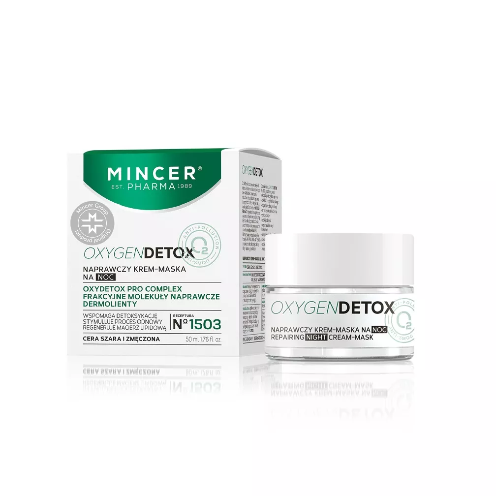 Mincer Pharma Oxygen Detox to naprawczy krem-maska na noc z linii Oxygen Detox, stworzony w celu zwiększenia oddychania komórkowego i minimalizowania skutków działania wolnych rodników. Jego zaawansowana receptura zawiera oxydetox pro complex, frakcyjne molekuły naprawcze oraz dermolienty, które wspomagają detoksykację, stymulują proces odnowy i regenerują macierz lipidową.