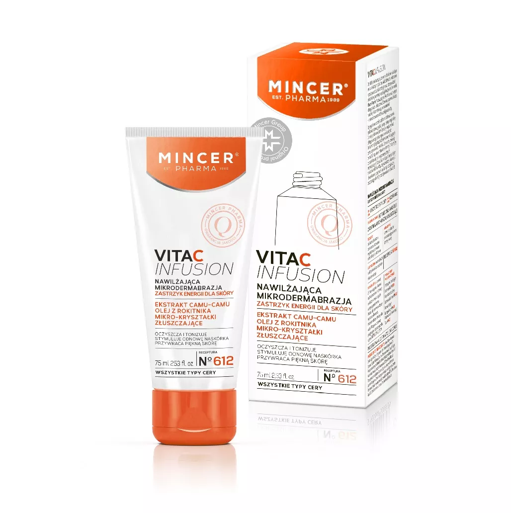Mincer Pharma Vita C Infusion nawilżająca mikrodermabrazja No.612 to wyjątkowy kosmetyk, który zapewnia skórze zastrzyk energii i promienny wygląd. Dzięki linii Vita C Infusion, mikrodermabrazja skutecznie oczyszcza, tonizuje, odświeża i ujednolica koloryt skóry. Produkt jest odpowiedni dla wszystkich typów skóry i może być stosowany zarówno na dzień, jak i na noc.