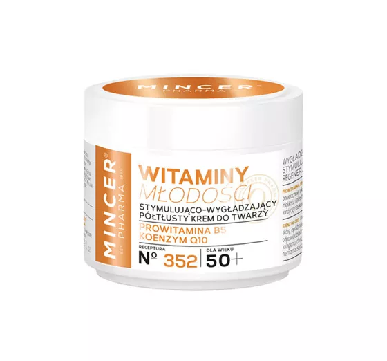 Mincer Pharma Witaminy Młodości 50+ krem półtłusty stymulująco-wygładzający do twarzy 352 50ml to idealne rozwiązanie dla osób z dojrzałą cerą, które poszukują skutecznego sposobu na zachowanie młodzieńczego wyglądu. Specjalnie opracowana formuła wspomaga regenerację skóry i poprawia jej elastyczność.