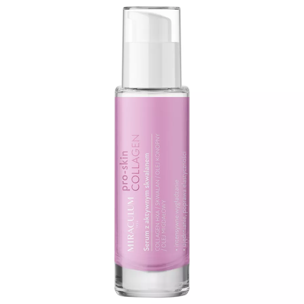 Miraculum Pro-Skin Collagen serum z aktywnym skwalanem to zaawansowany produkt pielęgnacyjny, który intensywnie wygładza, ujędrnia oraz poprawia elastyczność skóry. Dzięki zawartości skwalanu, który jest silnym antyoksydantem, serum skutecznie spowalnia procesy starzenia się skóry. Specjalny kompleks COLLAGEN HXA łączy trzy składniki znane z efektywnego działania przeciwzmarszczkowego, co wpływa na stymulację kolagenu wewnątrzkomórkowego, odmładzanie oraz poprawę kondycji skóry.