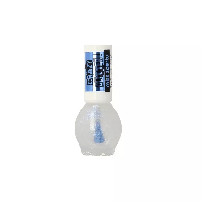 Crazy Glitter to wyjątkowa kolekcja lakierów do paznokci, zawierających drobinki, od marki Miss Sporty. Dzięki odpowiedniej konsystencji lakiery dobrze się rozprowadzają, nie tworząc smug. Pozostawiają paznokcie pełne blasku, pozwalając stworzyć niezwykle świetlisty manicure. Drobinki będą się zachwycająco mienić w słońcu, zatopione w bezbarwnym lakierze, dzięki czemu mogą być nałożone na każdy inny kolor. Występują w czterech, różnorodnie odbijających światło odcieniach.