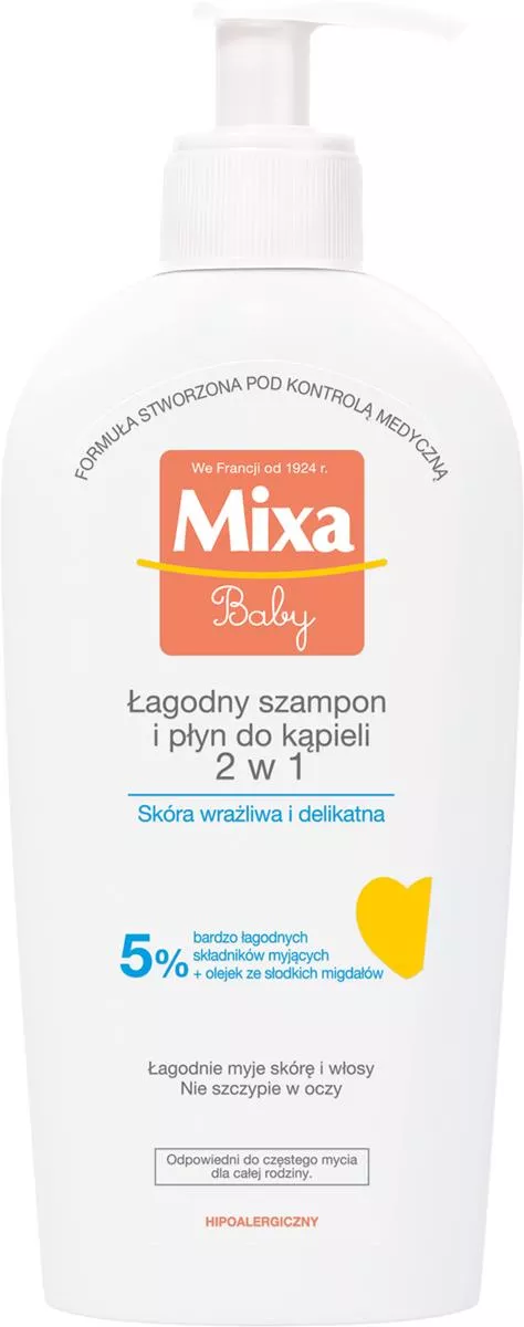 Mixa Baby, łagodny szampon i płyn do kąpieli 2w1, to idealny produkt do codziennej pielęgnacji najmłodszych. Dzięki formule zawierającej łagodne składniki powierzchniowo czynne, delikatnie myje zarówno skórę, jak i włosy dziecka. Wzbogacony olejkiem ze słodkich migdałów, nawilża i odżywia skórę, pozostawiając ją miękką i włosy jedwabiste oraz błyszczące. Podczas aplikacji zamienia się w bogatą, kremową pianę, co czyni kąpiel przyjemnym doświadczeniem. Produkt jest odpowiedni do częstego mycia dla całej rodziny i może być stosowany już od urodzenia.