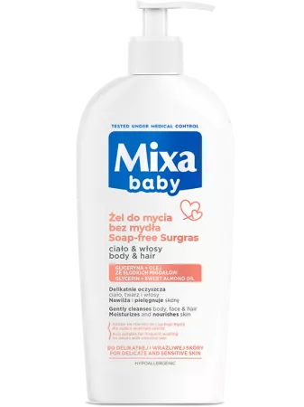 Mixa Baby, łagodny szampon i płyn do kąpieli 2w1, to idealne rozwiązanie do codziennej pielęgnacji delikatnej skóry i włosów najmłodszych. Jego specjalna formuła oparta na łagodnych składnikach powierzchniowo czynnych delikatnie myje, zapewniając skórze nawilżenie i odżywienie dzięki zawartości olejku ze słodkich migdałów. Produkt podczas aplikacji zmienia się w bogatą, kremową pianę, co sprawia, że kąpiel staje się przyjemnością. Piana łatwo się zmywa, pozostawiając skórę miękką, a włosy jedwabiste i lśniące. Szampon posiada delikatny zapach czystości, który utrzymuje się po kąpieli.