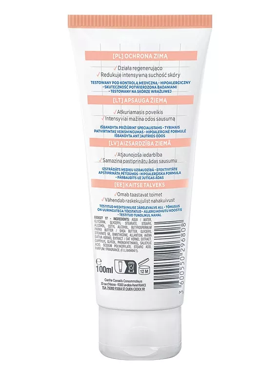 880027 17 - Skład: Aqua, Glycerin, Glyceryl Stearate, Stearyl Alcohol, Cetyl Alcohol, Butyrospermum Parkii Butter, Glyceryl Stearate SE, Dimethicone, Allantoin, Avena Sativa Kernel Extract, Caprylyl Glycol, Phenoxyethanol, Salicylic Acid, Sodium Polyacrylate, Stearic Acid, Parfum (f.i.l. B49494/2).