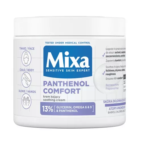 Mixa Panthenol Comfort to kojący krem do twarzy, dłoni i ciała, idealny dla wrażliwej i skłonnej do atopii skóry. Opracowany na bazie 13% formuły, zawiera najbardziej skuteczne składniki aktywne, które są znane ze swoich wyjątkowych właściwości pielęgnacyjnych.