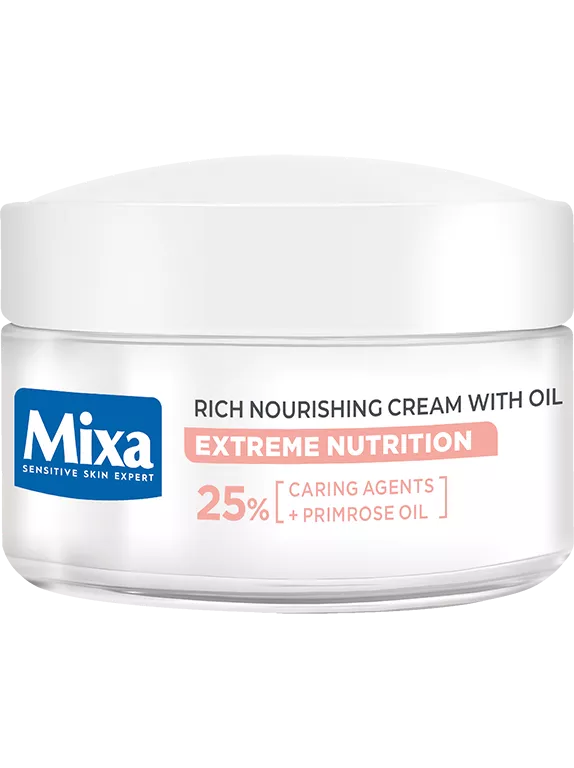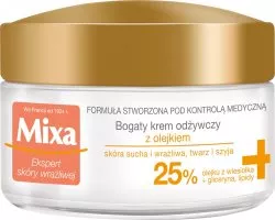 Odżywczy Krem z Olejkiem z Wiesiołka Mixa to idealny produkt do pielęgnacji cery wrażliwej i suchej, której bariera ochronna jest naruszona. Bogaty krem szybko się wchłania, nie pozostawiając na skórze tłustej warstwy. Dzień po dniu skóra staje się bardziej odporna i mniej skłonna do podrażnień na skutek działania czynników zewnętrznych. Krem koi, odżywia i nawilża, sprawiając, że skóra staje się natychmiast intensywnie odżywiona i ukojona. Zmniejsza się uczucie podrażnienia, ściągnięcia i pieczenia.