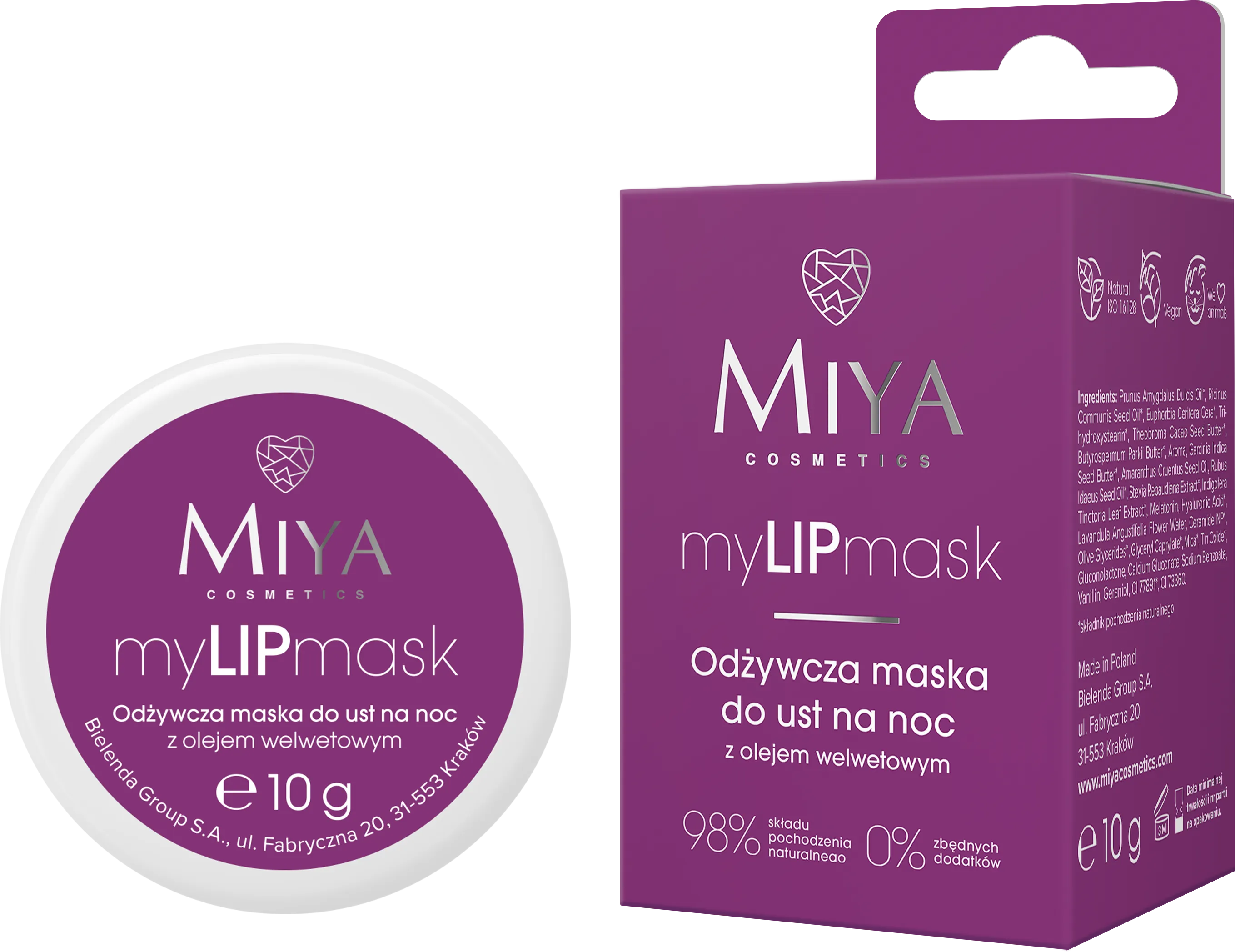 Poznaj Miya Cosmetics myLIPmask ? odżywczą maskę do ust na noc o naturalnej, otulającej formule, stworzoną z myślą o intensywnej regeneracji i głębokim nawilżeniu nawet najbardziej spierzchniętych warg. Ten wielozadaniowy kosmetyk działa, gdy Ty śpisz, zapewniając Twoim ustom gładkość, miękkość i zdrowy wygląd już od pierwszego użycia. Doskonale sprawdzi się również w ciągu dnia jako ochronny balsam, wspierając barierę ochronną ust i chroniąc je przed przesuszeniem.
