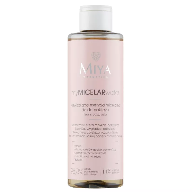 Przywróć skórze komfort w kilka chwil dzięki micelarnej esencji do demakijażu Miya My Micelar Water. Kosmetyk delikatnie, ale skutecznie usuwa makijaż i wszelkie zanieczyszczenia, a dodatkowo zapewnia wszechstronną pielęgnację. Ten kosmetyk to nie tylko oczyszczanie. Esencja dodatkowo nawilża - już po 15 minutach od aplikacji nawilżenie wzrasta o 24%. Dodatkowo esencja pomaga zachować naturalne pH skóry, wygładza i złuszcza delikatnie martwy naskórek.