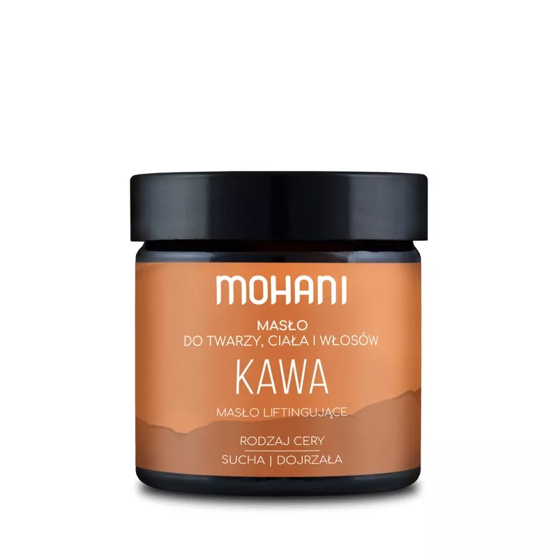 Masło kawowe Mohani Rich Butters o wadze 50g to produkt, który łączy w sobie miękką konsystencję i niezwykle przyjemny, kawowy aromat. Jest to naturalne masło, które wyróżnia się swoją uniwersalnością i wszechstronnością, mogąc zastąpić kilka kosmetyków na łazienkowej półce. Idealnie nadaje się do stosowania pod oczy, na twarz, ciało oraz włosy, wspomagając regenerację skóry, zmiękczając ją i przywracając elastyczność. Zawarta w nim kofeina pomaga wyrównać koloryt skóry, zwłaszcza pod oczami, oraz poprawia jej jędrność, co jest szczególnie korzystne na udach.
