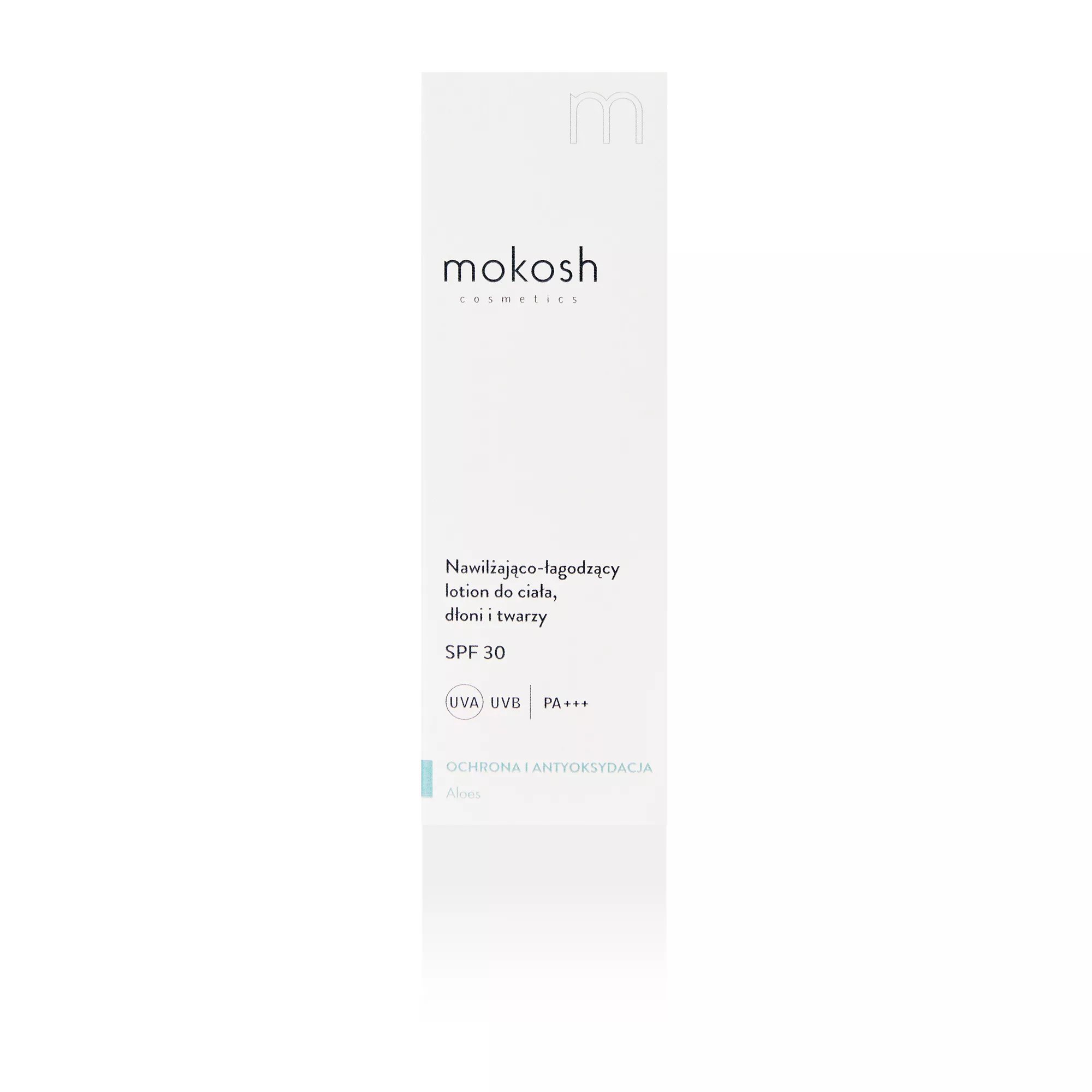 Nawilżająco-łagodzący lotion do ciała, dłoni i twarzy SPF 30, chroni przed powstawaniem i pogłębianiem się istniejących przebarwień, spowodowanych promieniowaniem UV, długotrwale nawilża skórę, łagodzi podrażnienia i zaczerwienienia, zmiękcza i wygładza, poprawia jędrność i elastyczność. Lekka, a jednocześnie odżywcza formuła zapewnia wysoka ochronę przed działaniem promieni UVA i UVB oraz innych czynników środowiskowych, które przyspieszają procesy starzenia. Efekty potwierdzone badaniami aplikacyjnymi, przeprowadzonymi na skórze wrażliwej w niezależnym laboratorium badawczym. Linia powstała z myślą o codziennej ochronie skóry przed negatywnymi skutkami promieniowania UV i wolnych rodników. Dzięki zastosowaniu innowacyjnego składnika chłodzącego skórę na poziomie komórkowym, hamuje również tzw. starzenie termiczne, wywołane wysoka temperatura. Formuły linii pozwalają na dłużej zachować cechy młodości - jędrność, gładkość i zdrowy koloryt cery.