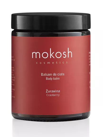 Odżywczo-ujędrniający balsam do ciała Mokosh stworzony jest na bazie naturalnych olei i ekstraktów roślinnych, ma słodki i apetyczny aromat żurawiny. Zawiera dużo drogocennych olei, takich jak: olej arganowy znany ze swoich właściwości odmładzających, czy olej jojoba, który doskonale odnawia płaszcz hydrolipidowy. Obecny w składzie olej żurawinowy ma działanie przeciwrodnikowe, regenerujące i wygładzające. Balsam został wzbogacony ekstraktem z wąkrotki azjatyckiej, wykazującej intensywne działanie przeciwzapalne, ujędrniające i nawilżające oraz ksylitolem, który utrzymuje odpowiednie stężenie kwasu hialuronowego w skórze.